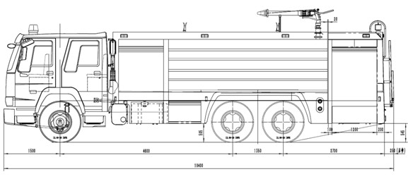 12噸消防車采用中國(guó)重汽集團(tuán)濟(jì)南卡車股份有限公司ZZ5357TXFV464MF5型二類汽車底盤,原裝雙排駕駛室,乘員2+4人,該車駕乘舒適輕便。上裝采用外露式水罐,整車載液量為水12000kg。器材箱采用高質(zhì)量鋁合金卷簾門。底盤取力,發(fā)動(dòng)機(jī)型號(hào)為MC11.44-60,最大功率327kW,通過(guò)萬(wàn)向聯(lián)軸器驅(qū)動(dòng)安裝在汽車尾部泵房里的上海雄真CB20.10/30.60型中低壓消防泵,可在1.0MPa下穩(wěn)定輸出60L/s的流量;2.0MPa下穩(wěn)定輸出30L/s的流量;車頂安裝成都威斯特消防器材有限責(zé)任公司生產(chǎn)的PS60W型消防炮,流量60L/s,對(duì)應(yīng)壓力1.0MPa,最大承壓1.3MPa,射程75m,可360°旋轉(zhuǎn)。同時(shí)該車具有比功率大、綜合性能強(qiáng)、操控集中簡(jiǎn)便等特點(diǎn)。