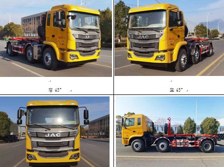 車廂可卸式垃圾車,又稱勾臂式垃圾車。是一種采用可伸縮的鉤臂實現垃圾箱的二次吊裝,可將垃圾箱自行吊上放下,并可自動傾倒垃圾的專用環衛垃圾運輸車輛。可一車配備多個斗,各個垃圾點放置多個垃圾斗,帶自卸功能,液壓操作,方便傾倒。